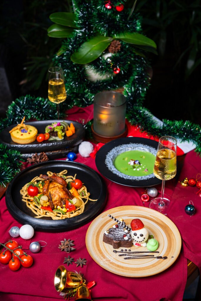 Indulge in a four-course festive dinner featuring Shrimp Tartlet, Asparagus Soup, Lemon Herb Roasted Baby Chicken, and Choco Brownies X’Mast, each dish thoughtfully crafted to capture the warmth and flavor of the season.